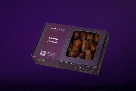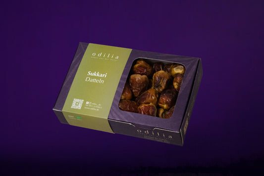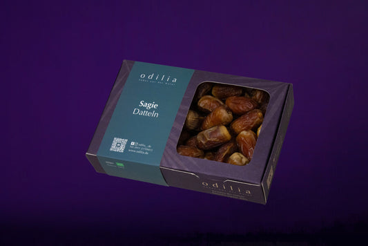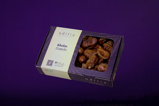 Unsere Datteln, darunter Medjool, Khudri, Segai, Monief und Safawi, stammen aus kontrolliert biologischem Anbau und sind frei von Zuckerzusatz und künstlichen Zusatzstoffen. Jede Dattelsorte zeichnet sich durch ihren einzigartigen Geschmack und ihre besonderen gesundheitlichen Vorteile aus. Ob als gesunder Snack, in Smoothies oder als Zutat für Ihre Lieblingsrezepte – unsere Datteln sind vielseitig einsetzbar und perfekt für bewusste Genießer. Erleben Sie die natürliche Süße und die hohe Qualität unserer Datteln und lassen Sie sich von ihrem Geschmack überzeugen. Entdecken Sie auch unsere Dattelpralinen und Dattelschokolade.