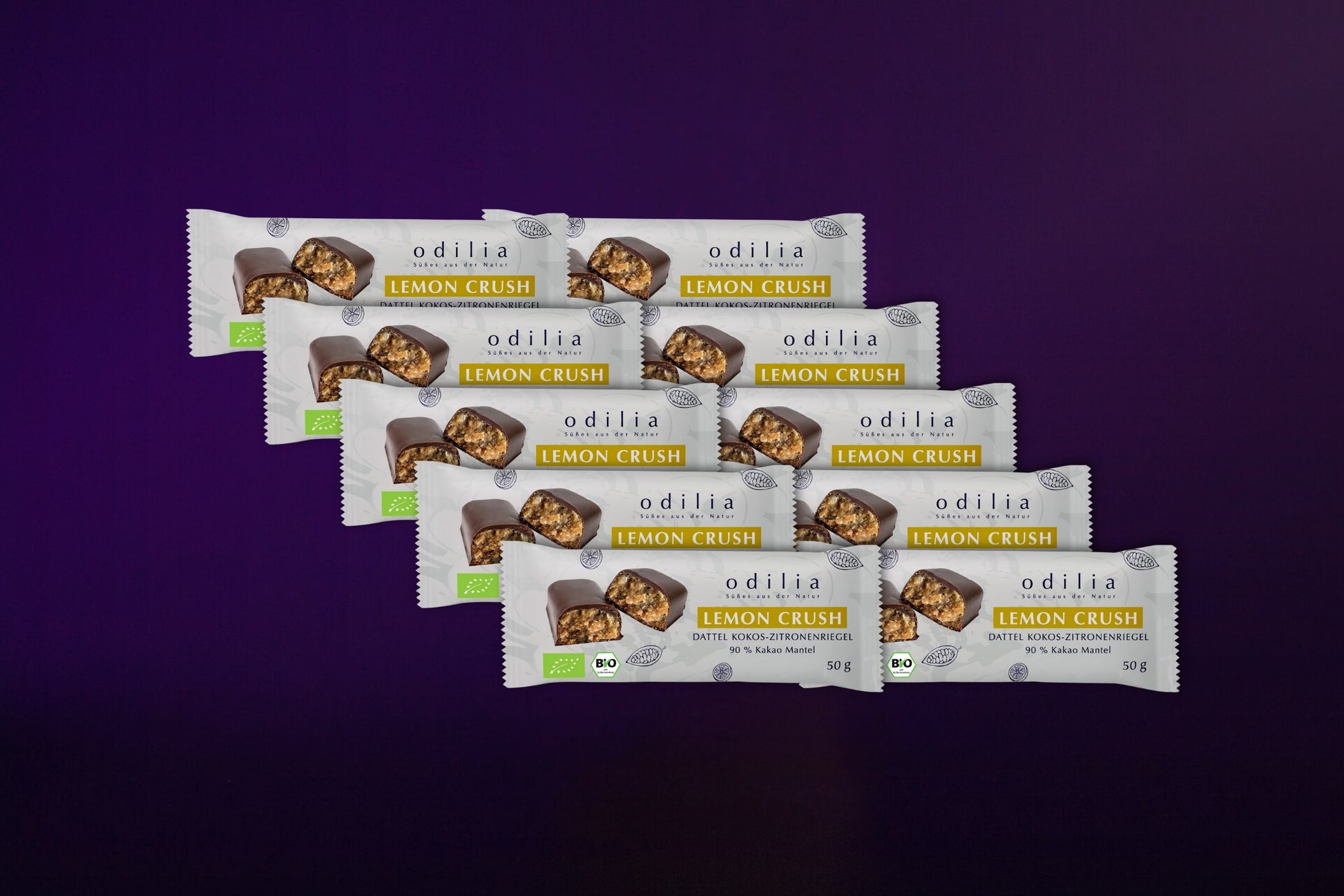 Der Lemon Crush Bio Dattel-Kokosriegel ist ein gesunder Genussmoment voller Frische und Harmonie. In unserer odilia-Manufaktur in Nürnberg nach eigenem Rezept handgemacht, vereint dieser Riegel natürliche Energie mit einzigartigem Geschmack – und ist damit viel mehr als nur ein Snack.