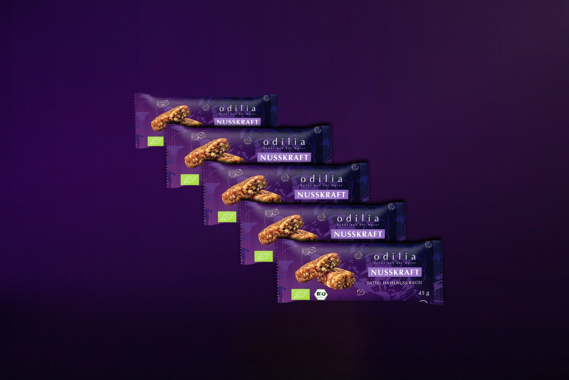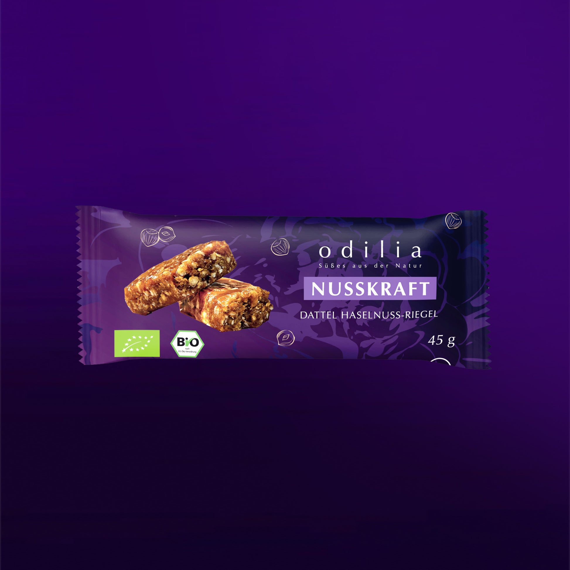 Ein perfekter Mix aus crunchy und soft: sonnengereifte Datteln treffen auf feine Haselnusscreme und knackig gehackte Haselnüsse. Unser veganer Bio-Riegel ohne Zuckerzusatz wird nach einem besonderen Odilia-Rezept direkt in unserer Manufaktur in Nürnberg hergestellt.